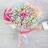 Небольшой букетик из радужной гипсофилы и розовой розы Эквадор.