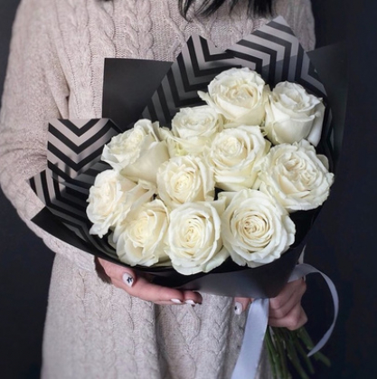 Букет белых роз в упаковке | Доставка цветов в Щелково